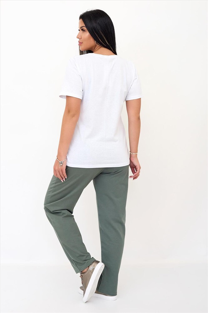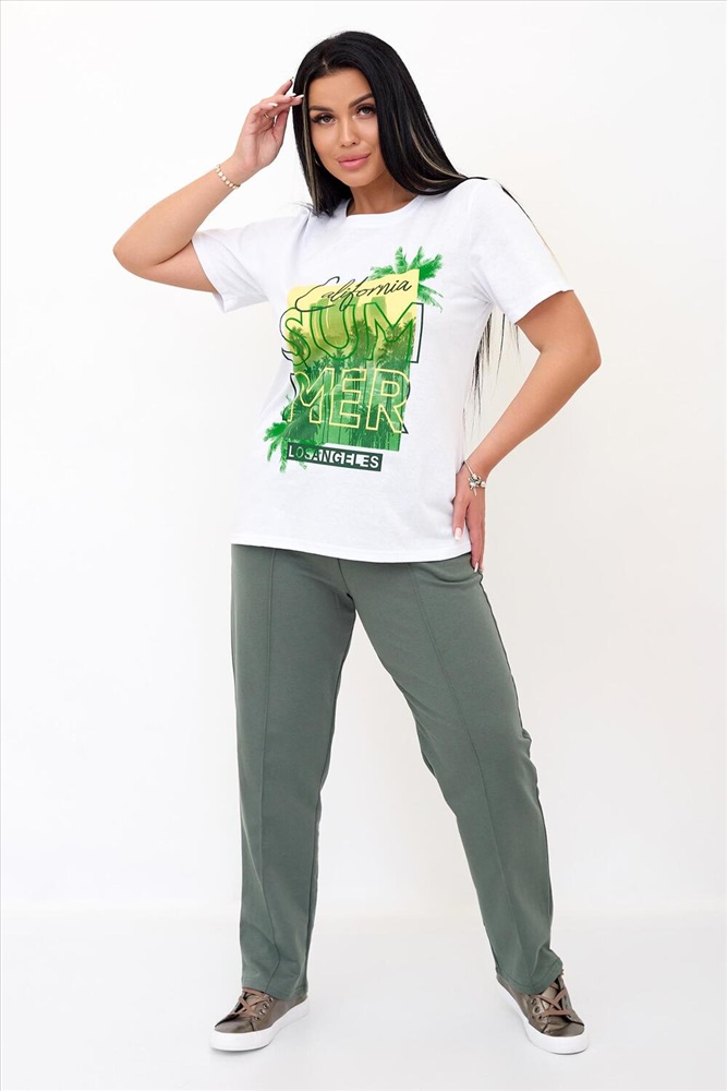 Застежка: без застежки Сочные цвета женского костюма наполнят Вашу жизнь яркими красками. Комплект состоит из базовой футболки с дизайнерским принтом и модных брюк комфортной длины с прошитыми стрелками и кармашками. В таком костюме Вы привлечете к себе внимание. Также в нем можно пойти на прогулку, отправиться на экскурсию, в отпуск или носить дома. Костюм можно носить раздельно сочетая с другими вариантами комплектации, например футболку с джинсовыми шортами, штаны с маечкой или с любой другой Вашей любимой футболкой!