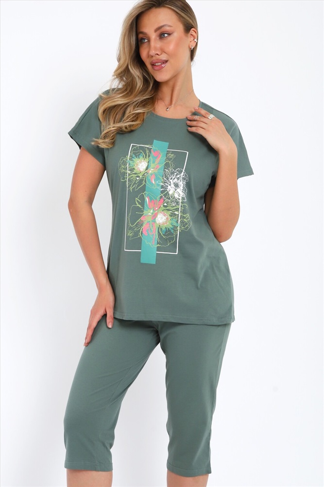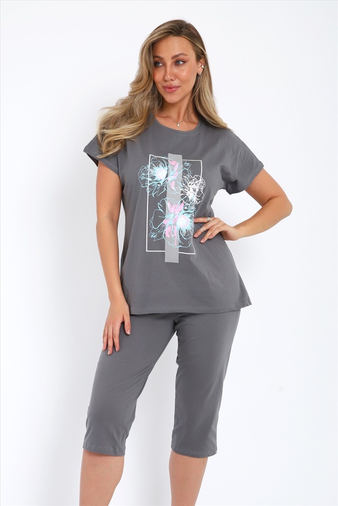Застежка: без застежки Летний костюм двойка для домашнего отдыха и сна из 100% хлопка. Футболка свободного кроя, удлиненная, с круглым вырезом горловины и коротким рукавом. Бриджи классической длины, прямого кроя. Мягкий и приятный к телу материал, обладающий высоким качеством, подарит вам настоящий уют на каждый день. Домашний костюм со штанами можно носить дома, на даче или использовать комплект как пижамный. Наш трикотажный костюм подойдет любой моднице. Такую домашнюю одежду для женщин можно использовать для йоги, активного отдыха, походов и прогулок весной и летом. Домашний костюм женский с бриджами с интересным рисунком соответствует моде и отлично подходит для повседневной носки. Домашняя одежда для женщин больших размеров подходит в качестве уличной, домашней и пляжной одежды. Пижама костюм яркого цвета с интересным рисунком соответствует моде и отлично подходит для повседневной носки. Дачный костюмчик больших размеров идеально подходит в качестве домашней одежды. Носите с удовольствием!