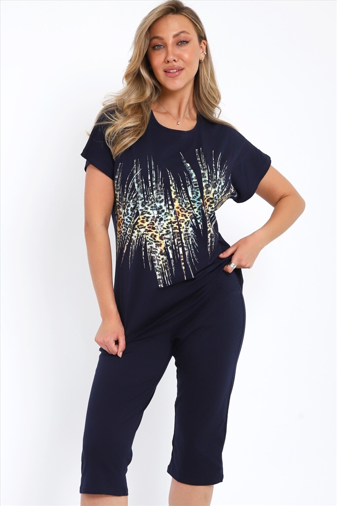 Состав: 100% хлопок Модель: Костюм женский с бриджами 32089 Тип товара: костюм с бриджами Материал: кулирка пенье | кулирка пенье Бренд: Modellance Карман: без карманов Назначение: для дачи | для дома НДС: 22% Особенности: на резинке Отделка: с печатью Посадка: средняя посадка Рисунок: анималистичный | разное Рукав: короткий рукав Сезонность: лето Силуэт: полуприлегающий | свободный Стиль: домашний Воротник: без воротника Застежка: без застежки Летний костюм двойка для домашнего отдыха и сна из 100% хлопка. Футболка свободного кроя, удлиненная, с круглым вырезом горловины и коротким рукавом. Бриджи классической длины, прямого кроя. Мягкий и приятный к телу материал, обладающий высоким качеством, подарит вам настоящий уют на каждый день. Домашний костюм со штанами можно носить дома, на даче или использовать комплект как пижамный. Наш трикотажный костюм подойдет любой моднице. Такую домашнюю одежду для женщин можно использовать для йоги, активного отдыха, походов и прогулок весной и летом. Домашний костюм женский с бриджами с интересным рисунком соответствует моде и отлично подходит для повседневной носки. Домашняя одежда для женщин больших размеров подходит в качестве уличной, домашней и пляжной одежды. Пижама костюм яркого цвета с интересным рисунком соответствует моде и отлично подходит для повседневной носки. Дачный костюмчик больших размеров идеально подходит в качестве домашней одежды. Носите с удовольствием! Таблица размеров и весафутболка