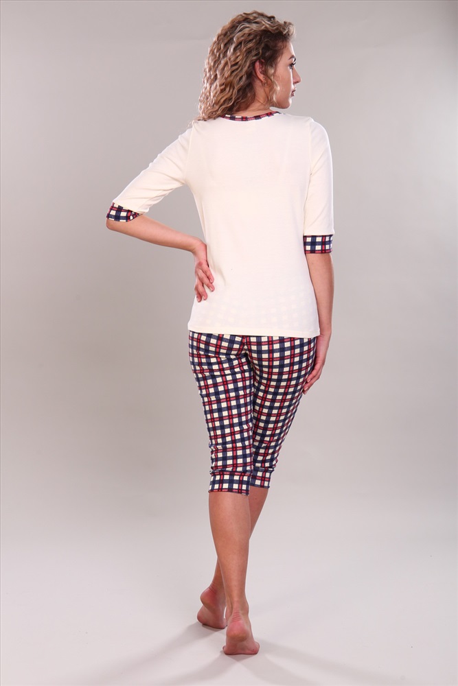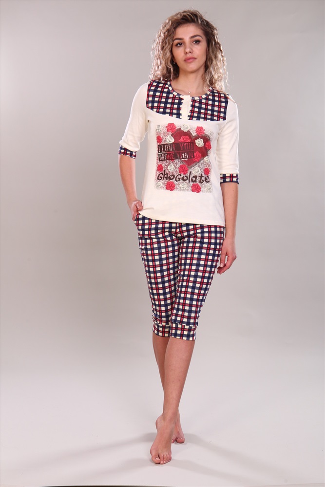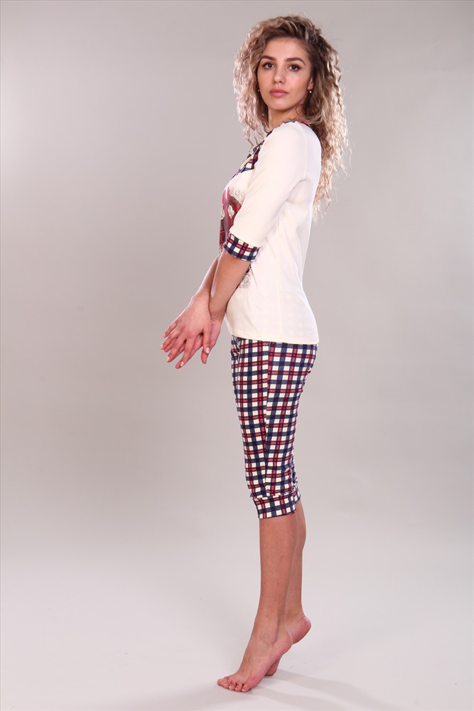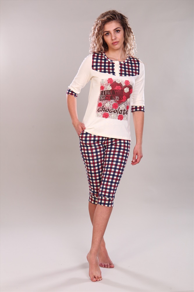 Состав: 100% хлопок Модель: Костюм женский с бриджами и футболкой 81 Тип товара: костюм с бриджами Материал: интерлок | интерлок Бренд: NINEL Карман: боковые Назначение: для дома НДС: Без НДС Особенности: на резинке Отделка: с карманами | с манжетами | с печатью Посадка: средняя посадка Рисунок: клетка | цветы Рукав: рукав 3/4 Сезонность: лето | осень | весна | зима Силуэт: прилегающий Стиль: домашний Воротник: без воротника Застежка: кнопка Элегантный женский комплект. Верх футболка с рукавами 3/4, украшенная модными клетчатыми вставками. Бриджи с классическим клетчатым узором гармонируют с декоративными элементами футболки. Модель выполнена из премиального интерлока. Идеально подходит для уютных вечеров и комфортного сна. Таблица размеров и весафутболка