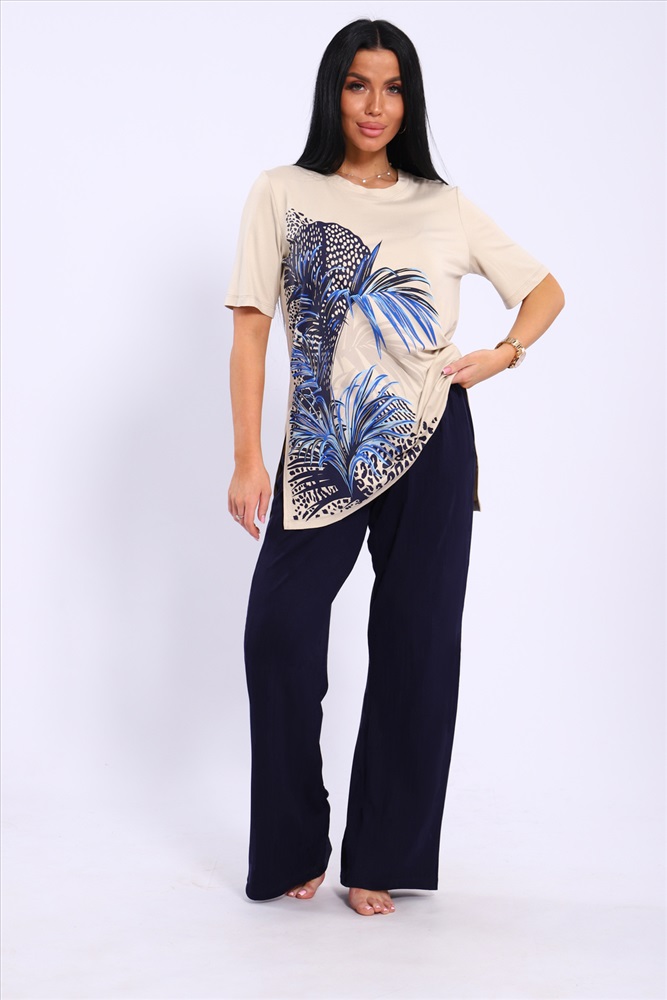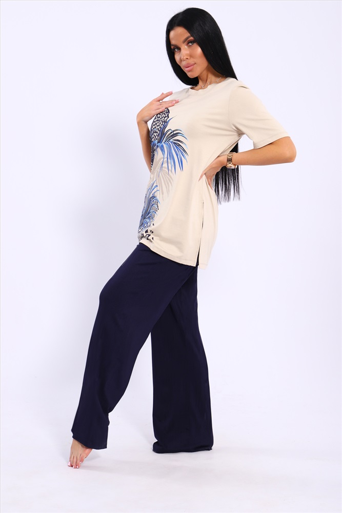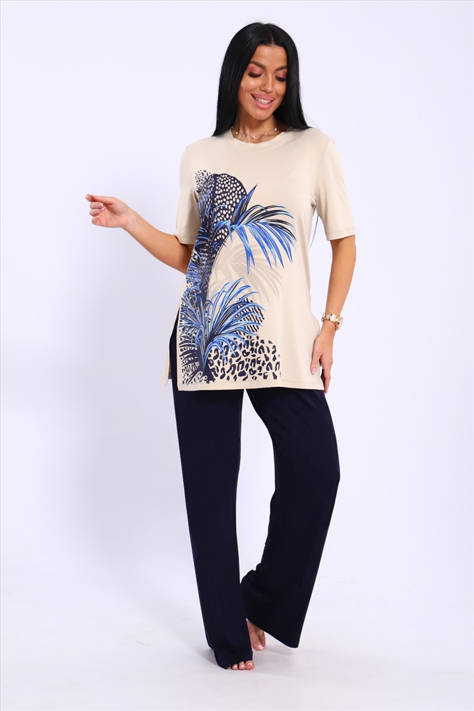 Состав: 95% вискоза 5% эластан Модель: Костюм женский с брюками и футболкой из вискозы 394 Тип товара: костюм с брюками Материал: вискоза | вискоза Бренд: NINEL Карман: без карманов Назначение: для дома НДС: Без НДС Особенности: на резинке Посадка: высокая посадка Рисунок: цветы Рукав: короткий рукав Сезонность: лето | осень | весна | зима Силуэт: свободный Стиль: домашний | повседневный Воротник: без воротника Застежка: без застежки Трикотажный костюм с брюками и удлиненной футболкой с разрезами по бокам, выполнен из премиальной вискозы с добавлением эластана, имеющий размерный ряд с 46-го по 56-й размеры Таблица размеров и весафутболка