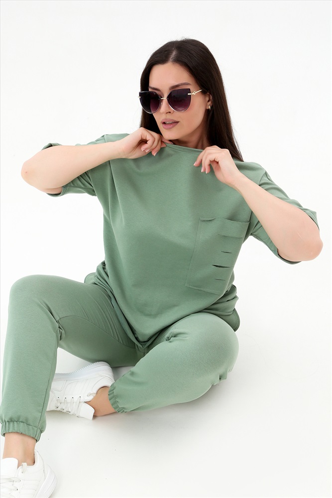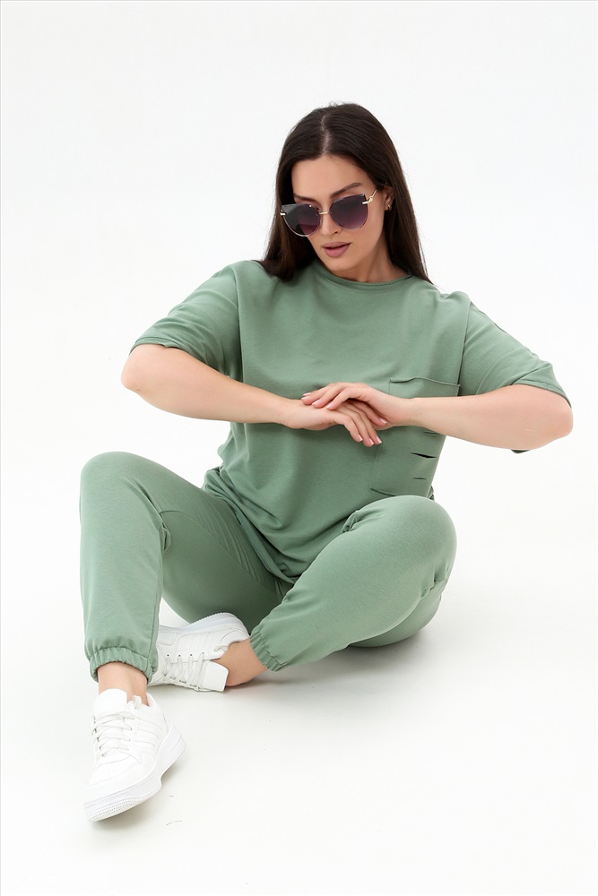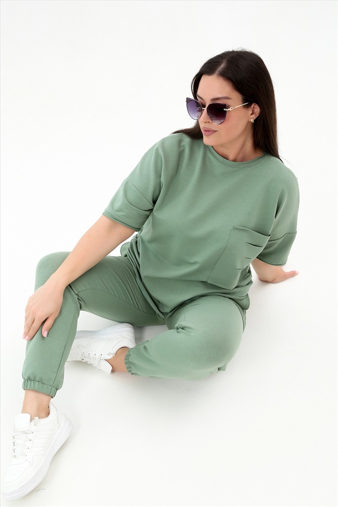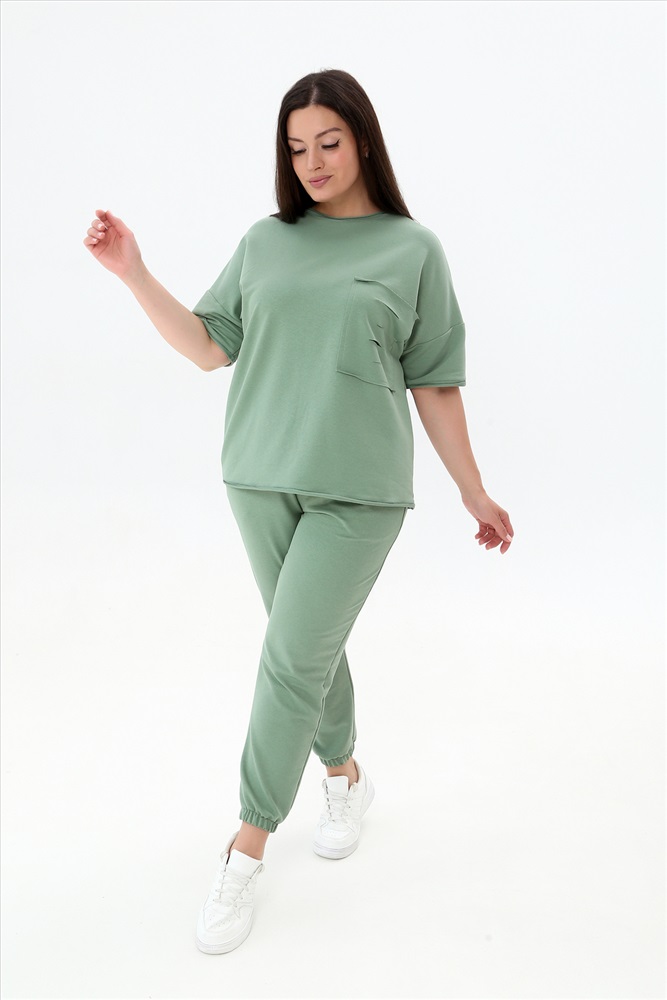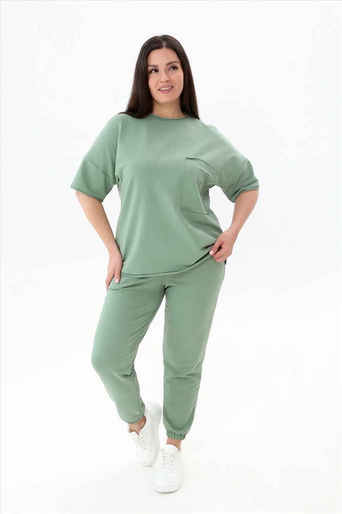 Состав: 80% хлопок 20% пэ Модель: Костюм женский с джоггерами КЖ-005 Тип товара: костюм с брюками Материал: футер 2-х нитка | футер 2-х нитка Бренд: OMG Карман: боковые | прорезные Назначение: для дома НДС: Без НДС Особенности: на резинке Отделка: с эмблемой | с карманами | с манжетами Посадка: средняя посадка Рисунок: однотонные Рукав: короткий рукав Сезонность: осень | весна | зима Силуэт: свободный Скидка: любая | от 10% и больше Стиль: домашний | повседневный | спортивный Воротник: без воротника Застежка: без застежки Представляем вам стильный и комфортный костюм женский от бренда OMG, который станет вашим любимчиком на каждый день! Этот костюм двойка, состоящий из футболки и джоггеров, идеально подходит для дома, прогулок в межсезонье и летом. Сочетание комфорта и стиля - вот что делает наш костюм с футболкой и штанами на резинке таким привлекательным. Свободный oversize крой обеспечивает легкость движений, а высококачественные материалы гарантируют комфорт даже в самые жаркие дни. Костюм выполнен из футера двунитки мягкого, но при этом износостойкого трикотажа средней плотности с высоким содержанием хлопка. Он приятен к телу, пропускает воздух и сохраняет форму после множества стирок. Добавление полиэстера делает ткань более прочной и устойчивой к деформации, что особенно важно для активных женщин. Не упустите возможность порадовать себя или своих близких! Этот спортивный женский костюм с джоггерами оверсайз станет замечательным подарком для родных и друзей. Широкая размерная сетка от маленьких до больших размеров позволит любой девушке или женщине подобрать свой костюм! Широкий выбор цветов позволит вам выбрать подходящую расцветку. Брендовая нашивка подчеркнет ваш индивидуальный стиль. Свободные штаны на резинке и футболка с разрезами выглядят очень стильно и визуально удлиняют ноги. Этот костюм - отличное решение для тех, кто ценит комфорт и стиль! Таблица размеров и веса
