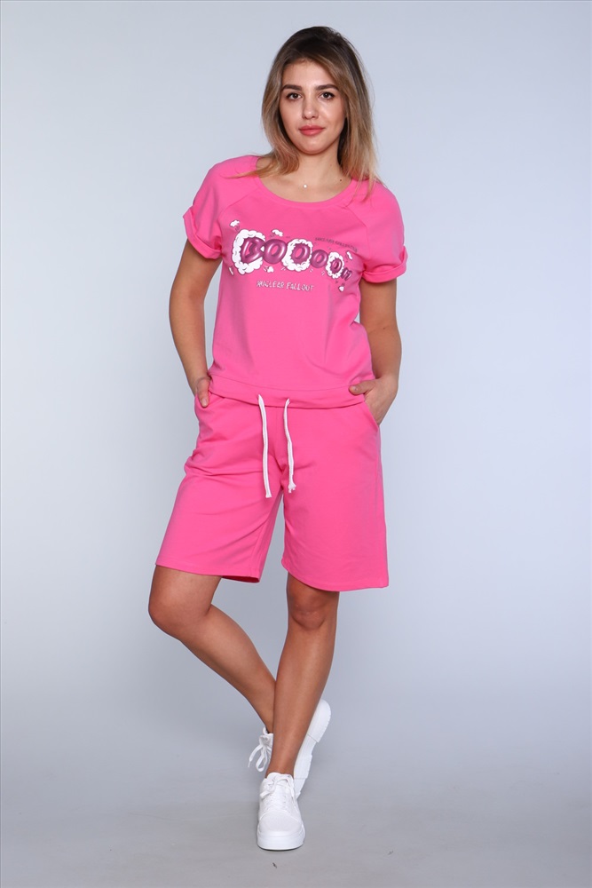 Застежка: без застежки Комплект двойка. Футболка свободного кроя с нанесением принта методом шелкография, шорты свободного покроя с боковыми карманами.