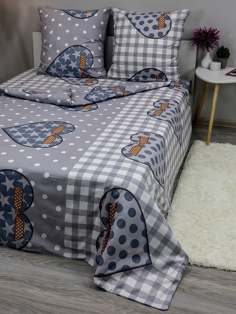 Рисунок: клетка | сердечки Комплект постельного белья 1,5сп изготавливается из бязи, ткани из качественного 100% натурального мягкого хлопка. Бязь - это ткань из натуральных волокон. Экологичная, гипоаллергенная, обладающая замечательными свойствами: воздухопроницаемость, гигроскопичность. Плотность ткани 120 (+/- 5) гр/м2. Комплект постельного белья 1,5 спальный из бязи прост в уходе - его легко стирать и быстро гладить. Качественные импортные красители, полный цикл закрепления, позволяют надолго сохранить насыщенность цвета. Легкий, мягкий и одновременно прочный материал великолепно подходит для постельного белья среднего ценового сегмента. Комплект постельного белья из бязи - разумный выбор качественного товара! Обращаем ваше внимание, что оттенок комплекта может незначительно отличаться от оттенка на фото. Способ застёгивания наволочки - клапан 20 см, пододеяльника - отверстие без застёжки по краю изделия с подвёрнутым краем. Комплект постельного белья 1,5 спальный включает в себя: пододеяльник 150х210 (+/- 2см) - 1 шт, простыня 150х210 (+/- 2см) - 1 шт, наволочки 70х70 (+/- 2см) - 2 шт.