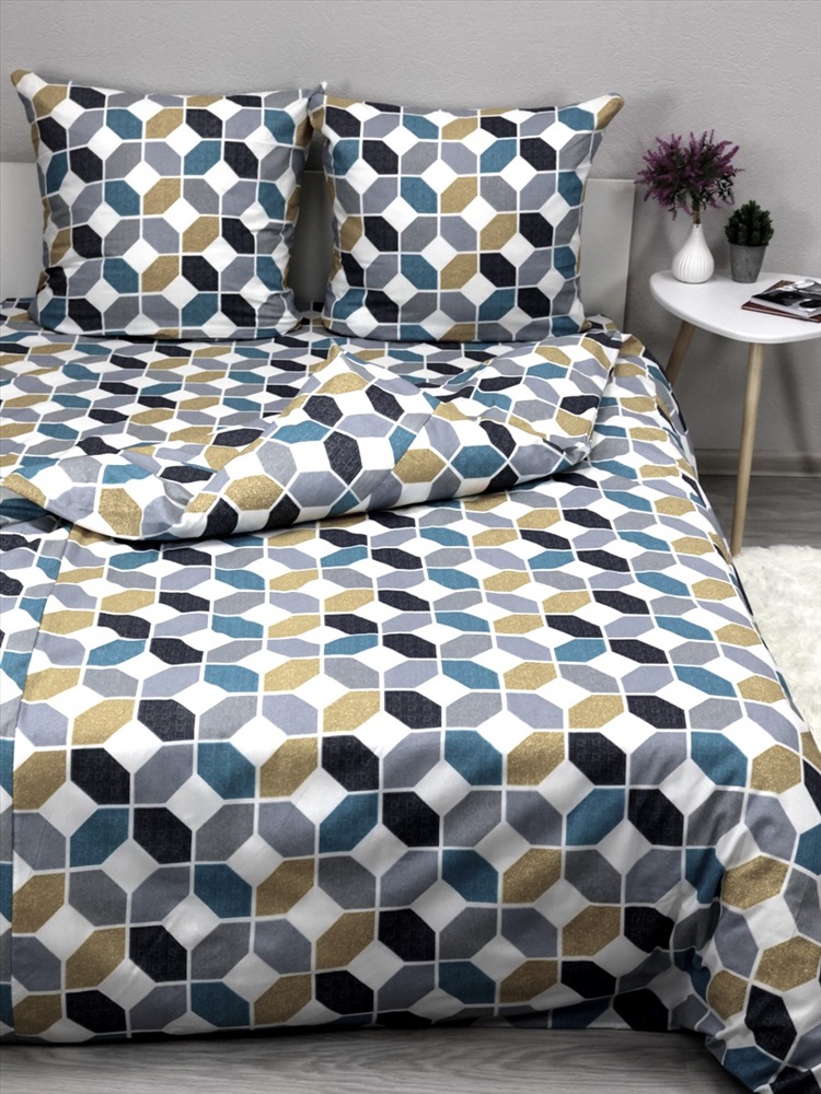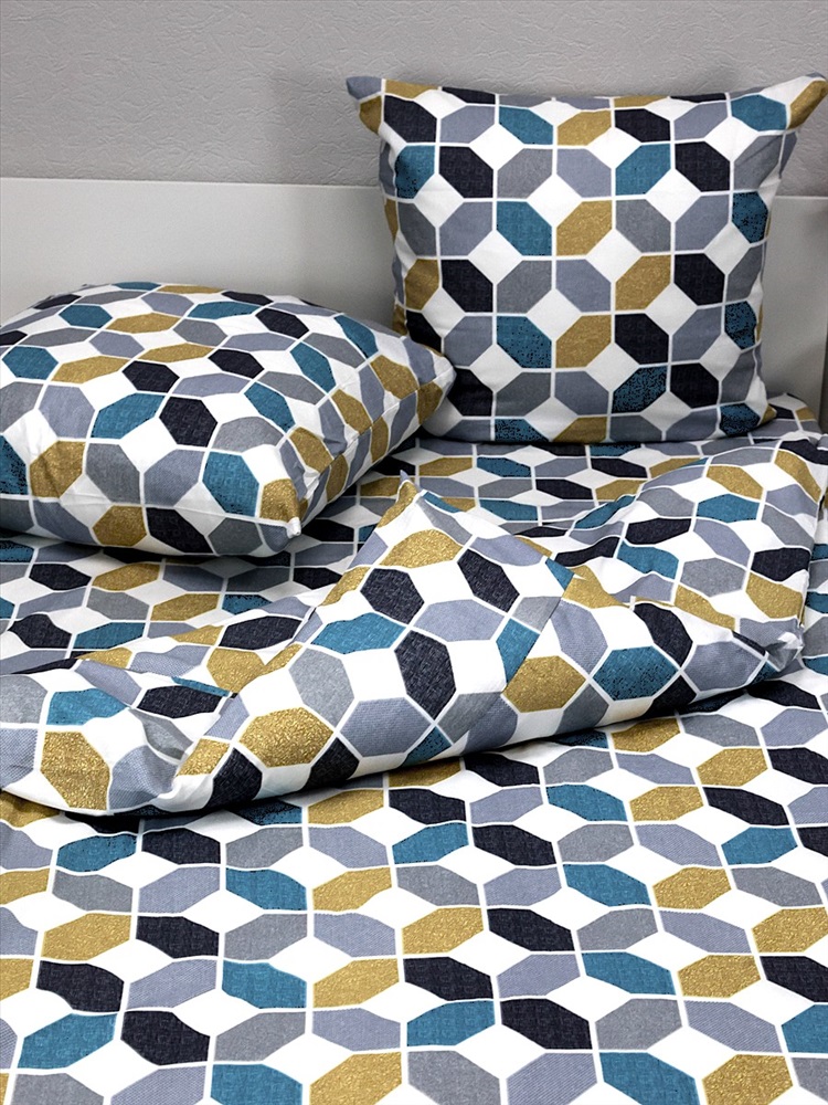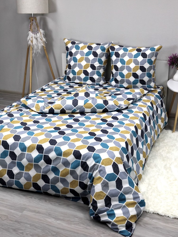 Рисунок: геометрия Комплект постельного белья 2,0сп изготавливается из бязи, ткани из качественного 100% натурального мягкого хлопка. Бязь - это ткань из натуральных волокон. Экологичная, гипоаллергенная, обладающая замечательными свойствами: воздухопроницаемость, гигроскопичность. Плотность ткани 120 (+/- 5) гр/м2. Комплект постельного белья 2,0 спальный из бязи прост в уходе - его легко стирать и быстро гладить. Качественные импортные красители, полный цикл закрепления, позволяют надолго сохранить насыщенность цвета. Легкий, мягкий и одновременно прочный материал великолепно подходит для постельного белья среднего ценового сегмента. Комплект постельного белья из бязи - разумный выбор качественного товара! Обращаем ваше внимание, что оттенок комплекта может незначительно отличаться от оттенка на фото. Способ застёгивания наволочки - клапан 20 см, пододеяльника - отверстие без застёжки по краю изделия с подвёрнутым краем. Пододеяльник и простыня имеет вшитый клин, комплект эконом класса. Комплект постельного белья 2,0 спальный включает в себя: пододеяльник 175х210 (+/- 2см) - 1 шт, простыня 175х210 (+/- 2см) - 1 шт, наволочки 70х70 (+/- 2см) - 2 шт.