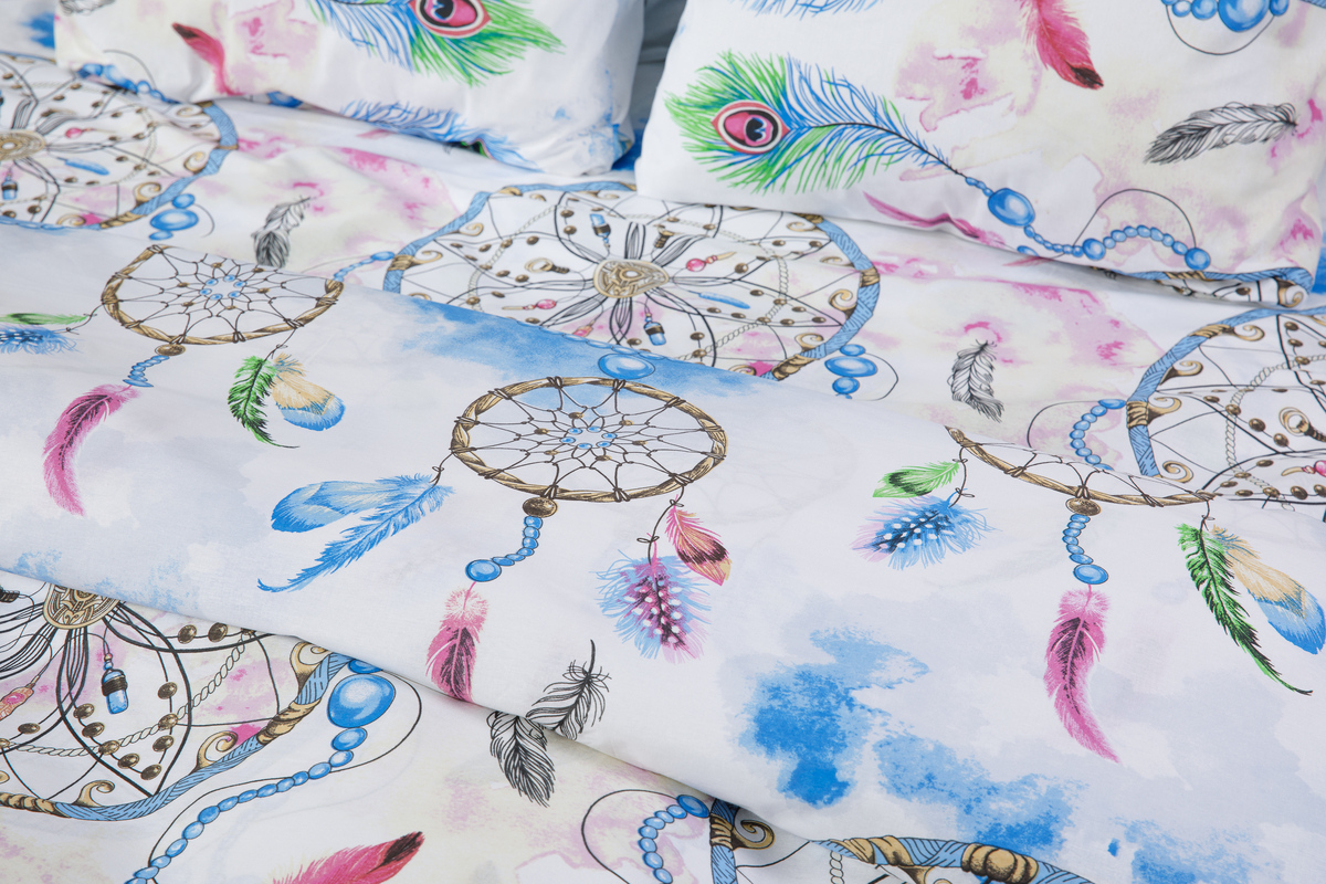 Состав: 100% хлопок Модель: КПБ Ловец снов бязь сем Тип товара: КПБ Материал: бязь | бязь Бренд: ТМ Веселина Фиксация: без резинки Назначение: для спальни НДС: 22% Рисунок: разное | узоры Сезонность: лето | осень | весна | зима Товары компании представлены под торговой маркой Веселина. Мы выпускаем постельное белье и покрывала из качественной бязи плотностью 125 гр. Бязь это хлопчатобумажная ткань, при производстве которой применяется самое простое переплетение полотняное. Поверхность материи получается одинаковой с обеих сторон, ровной и матовой. Экологичная, гипоаллергенная, износостойкая ткань отлично подходит для изготовления постельных принадлежностей.Комплектация комплекта: пододеяльник 215х145-2шт, простыня без резинки 220х240-1шт, наволочки- 2шт. Способ застегивания наволочки - клапан 20см, пододеяльника - отверстие без застежки снизу изделия, отстрочка по периметру,простыня -края обработаны с 4х сторон швом вподгибку 1 см с закрытым срезом. Таблица размеров и веса