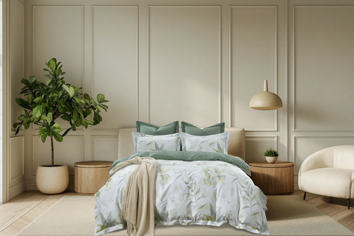 Застежка: молния Комплект выполнен из сатина натуральной, тактильно приятной и очень прочной ткани. Гладкие туго скрученные нити плотно прилегают друг к другу, обеспечивая красивый дорогой блеск и высокую износостойкость сатинового полотна. Даже после многочисленных стирок комплект сохранит свой первозданный вид, мягкость и гладкую текстуру. Благодаря тому, что комплект Mirra изготовлен из 100% хлопка, спать на нем комфортно в любую погоду. Натуральная ткань обладает отличной воздухопроницаемостью, гигроскопична, экологична и гипоаллергенна. Кроме того, сатин это излюбленный материал дизайнеров, он никогда не выходит из моды и способен преобразить любой интерьер. Спокойный растительный орнамент комплекта Mirra сделает Вашу спальню по-настоящему уютной и добавит легкости утреннему пробуждению Модель: Брендированная молния на наволочках и пододеяльнике. Пододеяльник декорирован ушками 8 см, наволочки декорированы ушками 5см. Упаковка: подарочная картонная коробка и пакет. РАЗМЕР: простынь 240*260 пододеяльник 200*220 наволочки 50*70 - 2шт, 70*70 - 2 шт