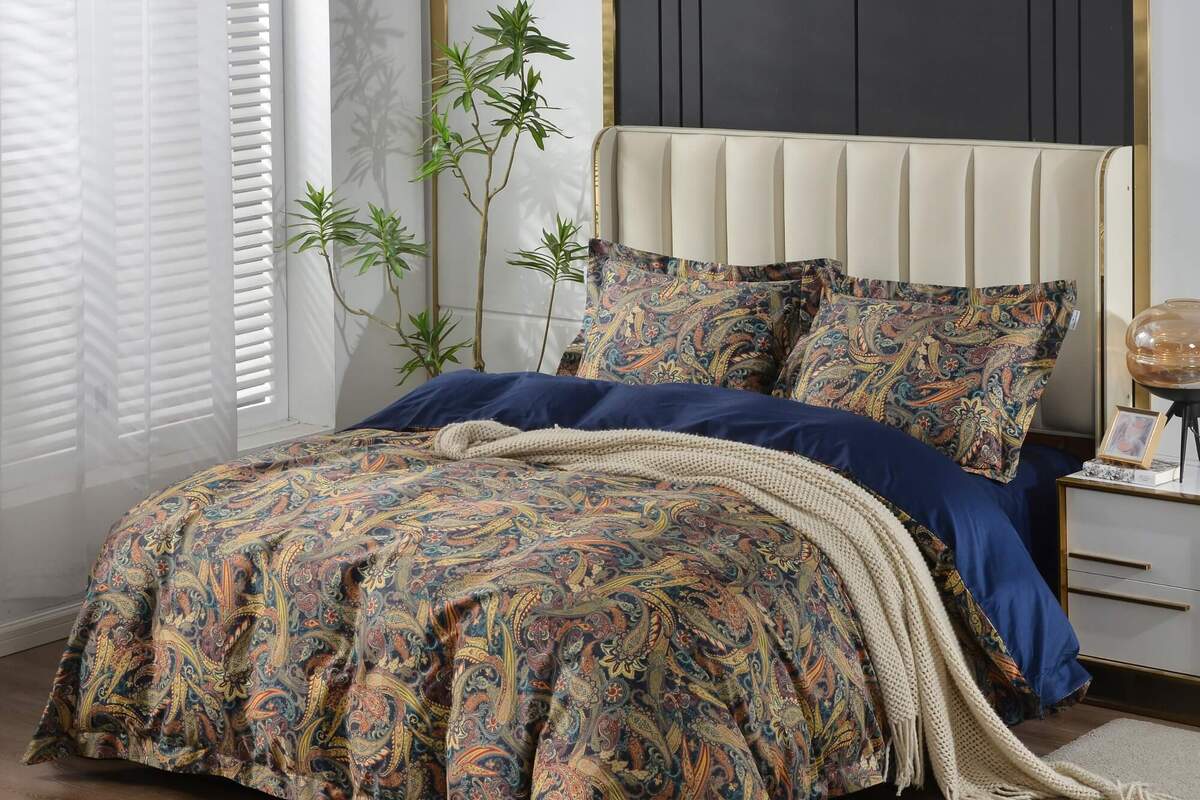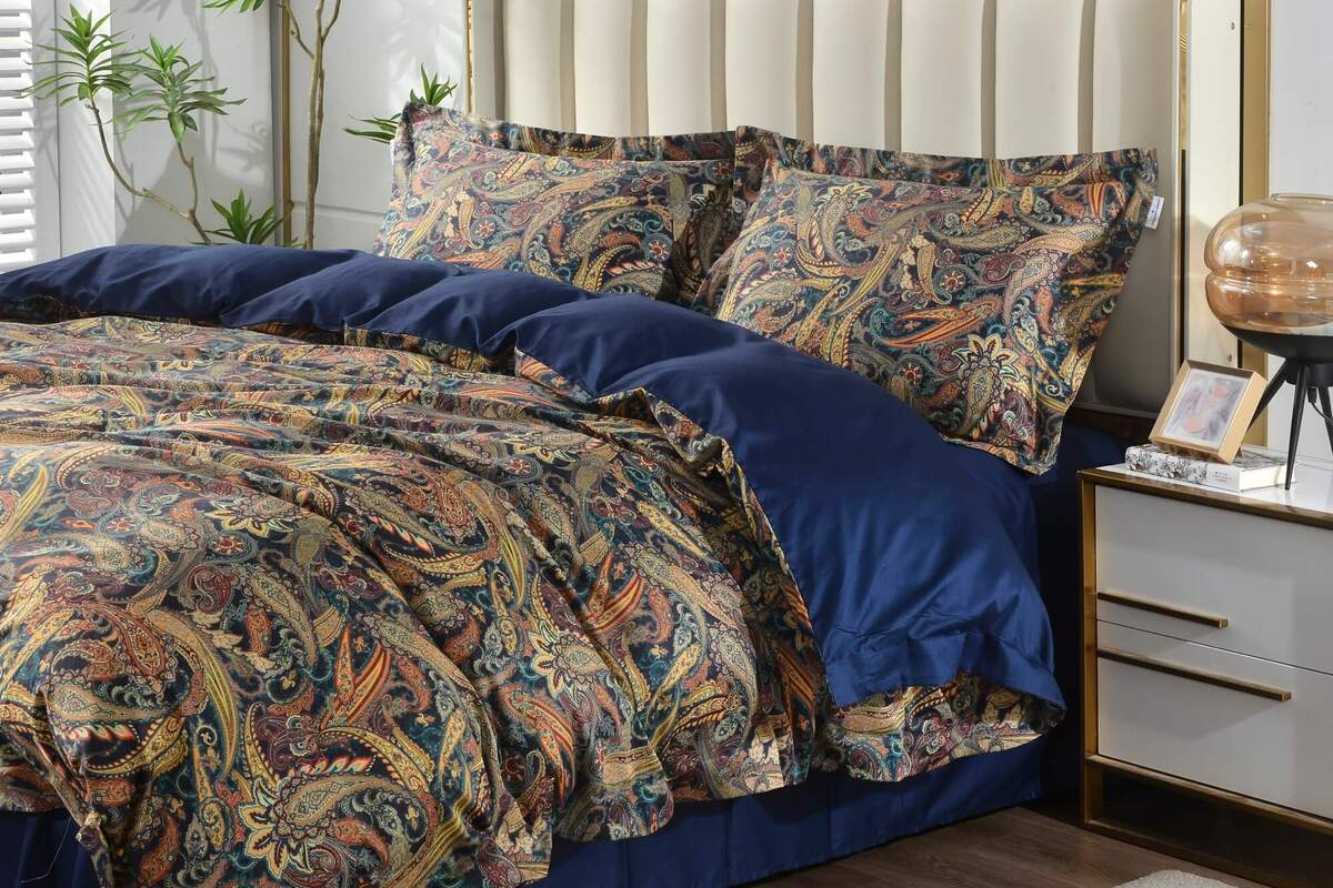 Состав: 100% длинноволокнистый египетский хлопок Модель: КПБ Oleta евро с 2 наволочками Тип товара: КПБ Материал: макосатин | макосатин Бренд: THE ELEVENTH KINGDOM Фиксация: без резинки Назначение: для спальни НДС: Без НДС Рисунок: цветы | узоры Сезонность: лето | осень | весна | зима Для нашего фирменного постельного белья коллекции Egyptian Cotton мы используем макосатин из пряжи 60s плотности 380ТС. Ткань дышит, впитывает излишнюю влагу, окутывает теплом зимой и дарит легкую прохладу летом. Макосатин это премиальный вид сатина из тончайшего египетского хлопка, признанного лучшим из сортов хлопка во всем мире. Хлопковые нити, полученные из сырья сорта мако, невероятно тонкие, легкие и шелковистые, при этом не уступают по прочности обычному хлопку. Принт на ткань нанесен методом цифровой печати. Это современный экологичный и практичный способ нанесения изображения на ткань. Мы используем натуральные красители на водной основе, закрепление краски происходит за счет высоких температур. Краситель не вымывается, не линяет, выдерживает свыше 200 циклов стирки, при этом ткань становится мягче с каждой стиркой. Изящный пошив с ушками 5см на наволочках и пододеяльнике. Лицевая сторона принт, обратная сторона однотонный макосатин глубоких цветов, что делает комплект сбалансированным, статусным и дорогим визуально. Наволочки и пододеяльник оснащены высококачественными молниями YKK с брендированным бегунком, изготовленным специально для The Eleventh Kingdom. Для комфортного вдевания пододеяльника мы используем молнии увеличенной длины 160см, аккуратно скрытые тканевым клапаном 25мм. Постельное белье коллекции Egyptian Cotton представлено в 7 расцветках (принтах) в размере Евро. В комплект постельного белья макосатин принт Евро размера входит классическая натяжная простыня 240х260см, пододеяльник 200х220см с ушками 5см, две наволочки 50х70см с ушками 5см. Стильная подарочная упаковка удачно дополняет комплект, делая его желанным подарком, не требующим дополнительной упаковки. Уход: деликатная стирка при температуре не выше 40 градусов, не отбеливать, химчистка запрещена, деликатный отжим, глажка при температуре до 150 градусов с изнаночной стороны, допустимо использование пара Все наши ткани соответствуют стандарту OEKO-TEX. Международный знак качества OEKO-TEX гарантирует отсутствие в изделиях вредных веществ, представляющих угрозу здоровью и экологии. Таблица размеров и веса