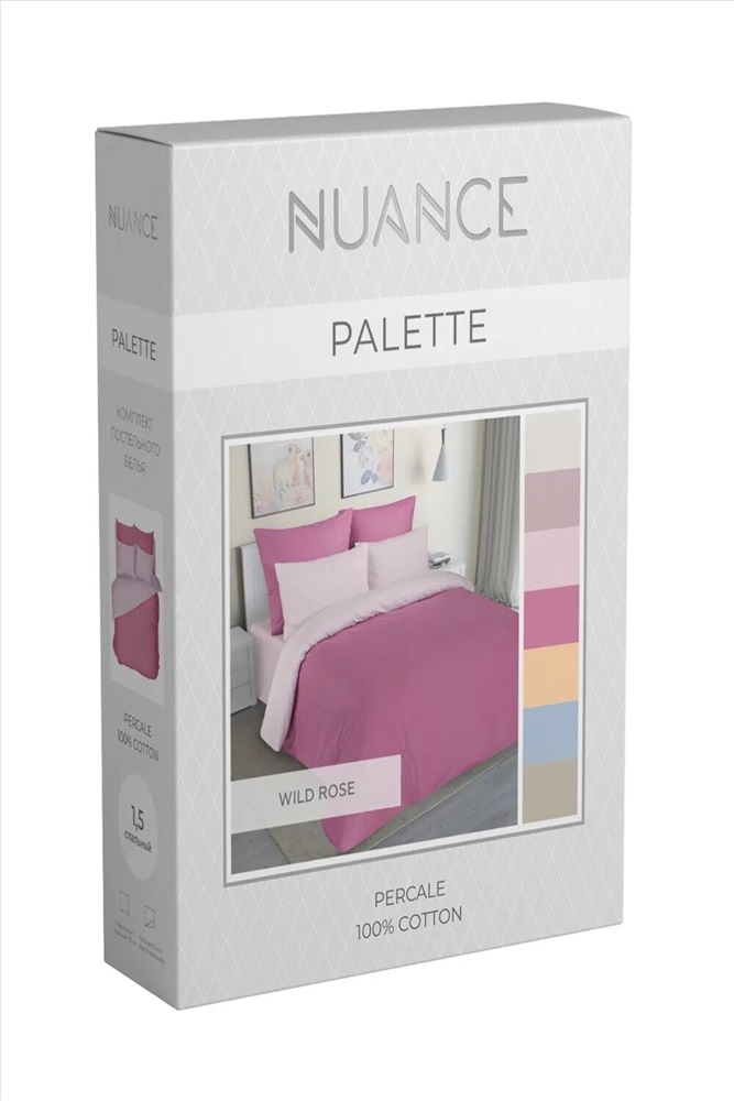 Состав: 100% хлопок Модель: КПБ Перкаль NUANCE PALETTE Wild Rose Тип товара: КПБ Материал: перкаль | перкаль Бренд: Ившвейстандарт Фиксация: без резинки Назначение: для спальни НДС: 22% Рисунок: однотонные Сезонность: лето | осень | весна | зима Скидка: любая | от 10% и больше Коллекция NUANCE PALETTE - цветовой код вашего дома и настроения! Вы хотите привнести в свой дом гармонию и стиль? Тогда ваш выбор - коллекция постельного белья NUANCE PALETTE. Мы предлагаем вам приём, который используют профессиональные дизайнеры для создания комфортного и уютного пространства дома - цветовую палитру сочетаемости цветов в интерьере. Теперь вы легко сможете выбрать гармоничное сочетание дизайна комплектов и интерьер, создать стиль и настроение своего дома. Постельное бельё NUANCE PALETTE изготовлено из высококачественной ткани перкаль. Благодаря тонкой нити и частого переплетения она очень прочная, а за счет плотности ткани - практически невесомая. Кроме того, постельное белье из перкали выглядит роскошно, является гипоаллергенным, безопасным, воздухопроницаемым, гигроскопичным. Наволочки с клапаном, пододеяльник с отверстием в нижнем шве, простынь стандартная (без резинки) Перкаль, хлопок 100%, плотность 110 г/м2. В комплекте размер Евро и Семейный 2 дополнительные наволочки 50*70. Таблица размеров и веса