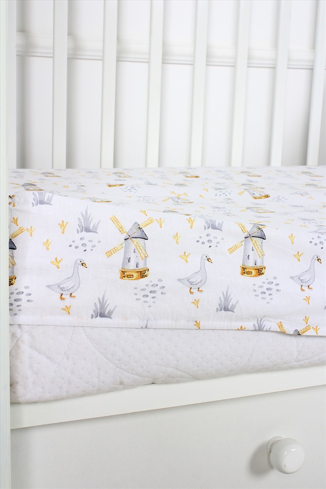 Модель: КПБ с простыней на резинке поплин арт. КПБП-ПР/гуси