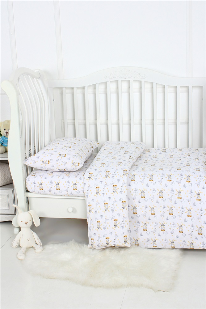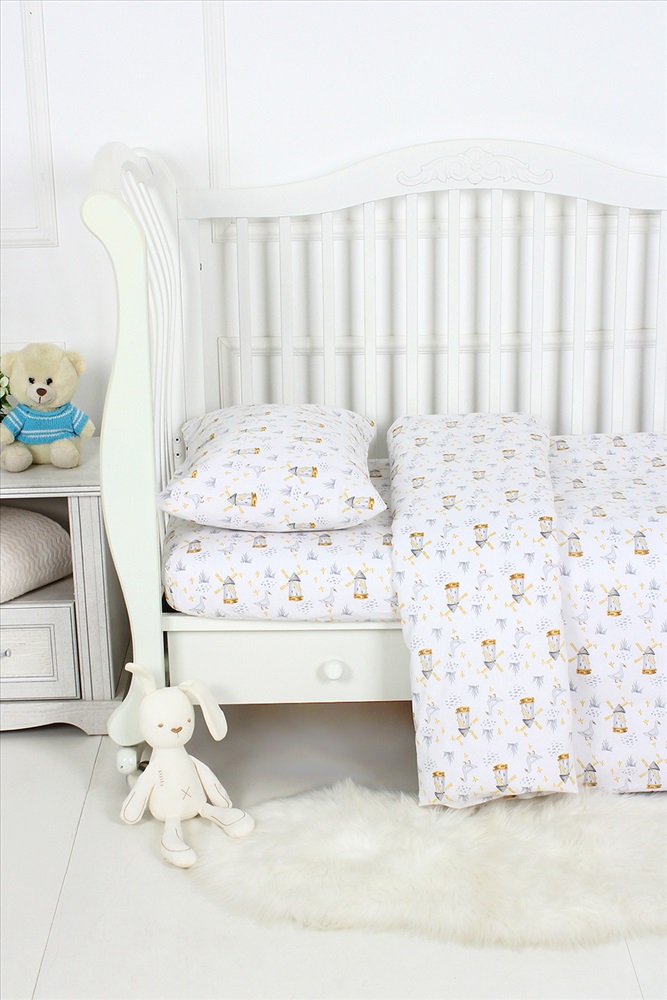 Сезонность: лето | осень | весна | зима Комплект постельного белья с простыней на резинке на прямоугольный матрас размером 120х60см в детскую кроватку, из яркой современной расцветки. Поплин 100% хлопок. Размер пододеяльника 110х148см, наволочка 40х60см. Ткань абсолютно гипоалергенна. Материал высокого качества сохраняет форму и легко стирается. Хлопок обеспечивает отличную терморегуляцию и воздухообмен, чтобы малыш не потел. Ваш ребёнок всегда будет чувствовать себя комфортно и уютно.