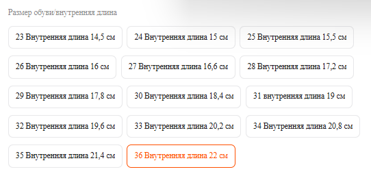 Размер: 23, 24, 25, 26, 27, 28, 29, 30, 31, 33, 34, 35, 36