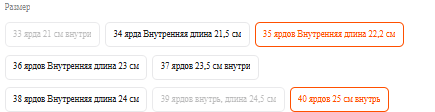 Размеры в наличии