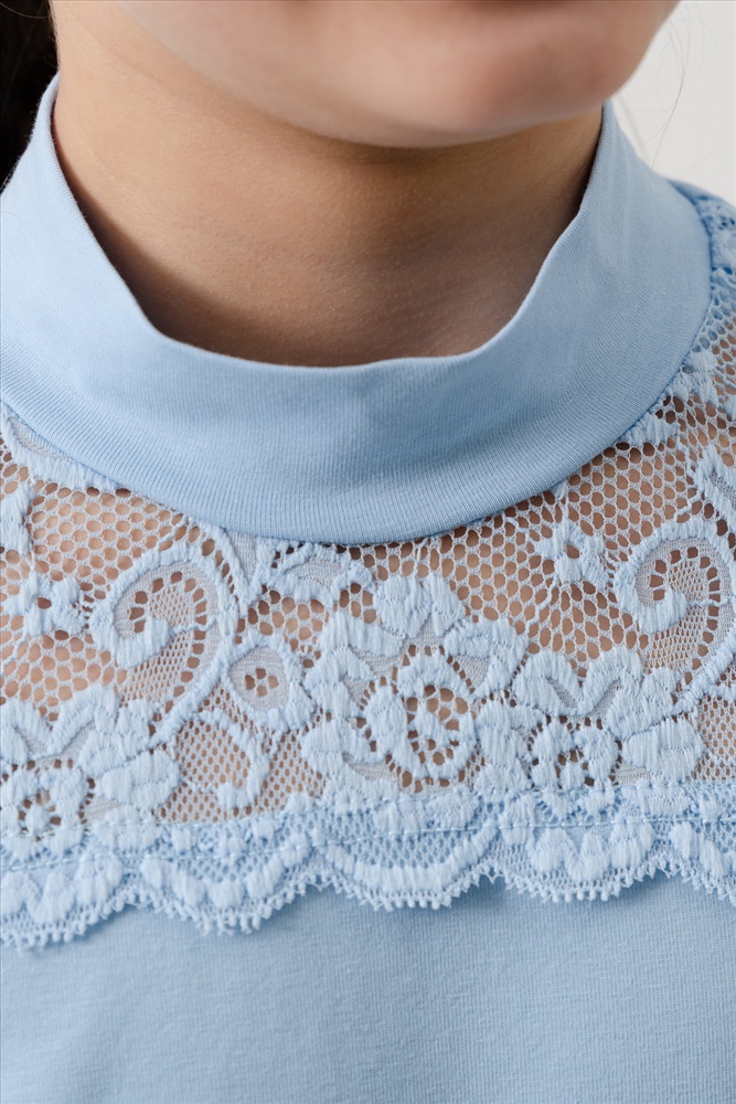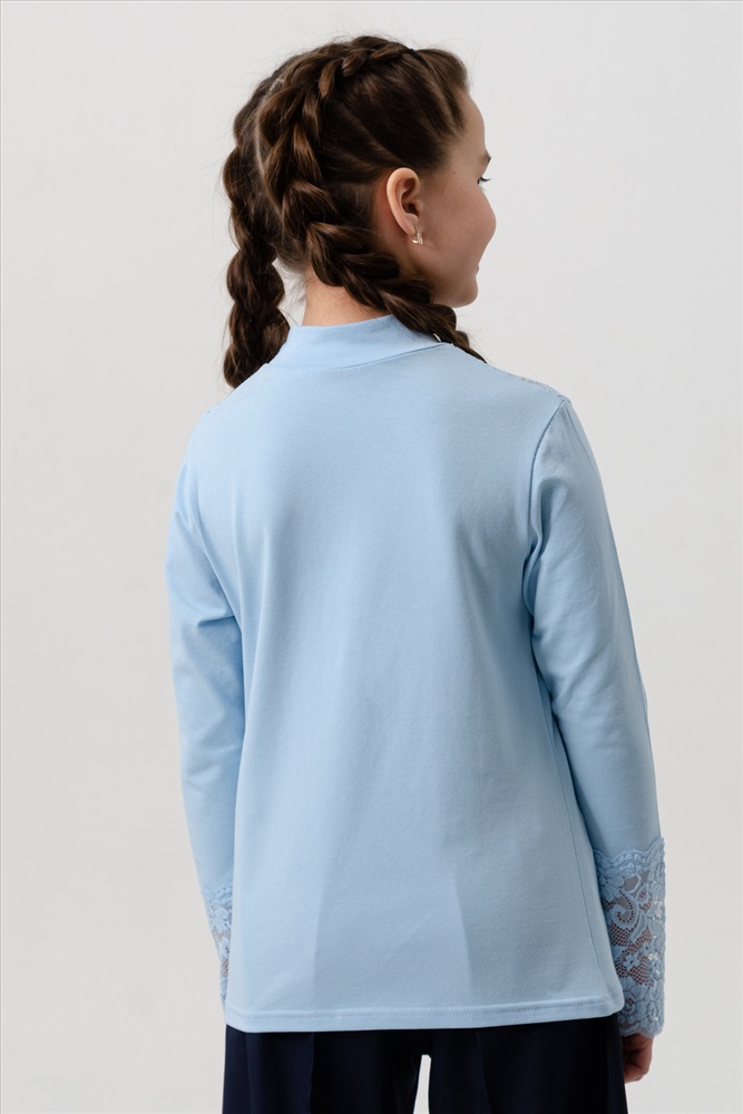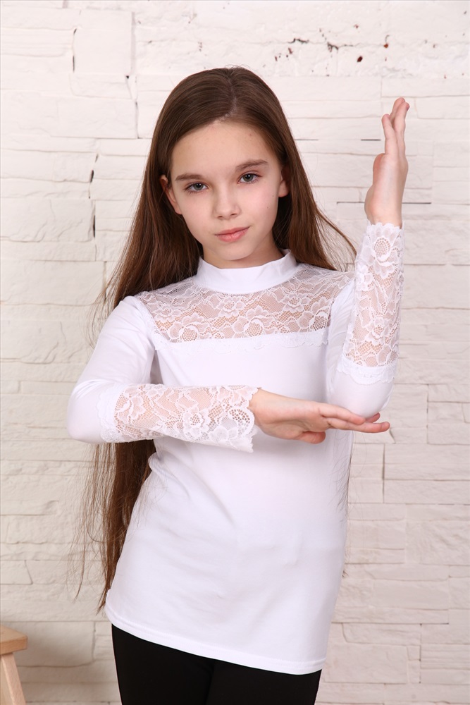 Состав: 92% хлопок; 8% лайкра Модель: Кружевница блузка детская Тип товара: блузка Материал: кулирка с лайкрой | кулирка с лайкрой Бренд: Мурлыка Длина: средняя длина Рейтинг: Рейтинг 4 и выше Рисунок: однотонные Рукав: длинный рукав Сезонность: лето | осень | весна | зима Силуэт: полуприлегающий | прямой Стиль: для школы | повседневный Воротник: воротник стойка Блузка для девочек младшего и старшего школьного возраста, из трикотажного полотна однотонная кулирка с лайкрой и кружева (дизайн и ширина кружева может меняться). Блузка прилегающего силуэта, с втачным рукавом, с воротником стойкой. Спереди отрезная кокетка из кружева. На спинке отсутствуют линии членения. Рукав длинный одношовный. По низу рукава настрочено широкое кружево. Низ изделия подогнут. Таблица размеров и веса