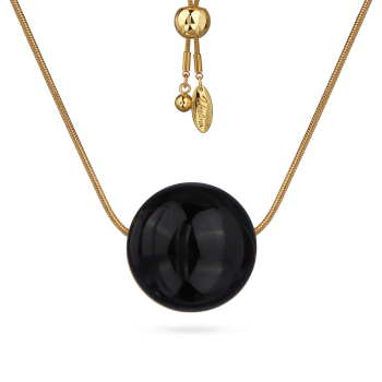 Изготовлено из ювелирного сплава на основе латуни с гальваническим покрытием золотом. Изделие украшает эмаль черного цвета. Диаметр украшения 25мм. Длина колье регулируется.