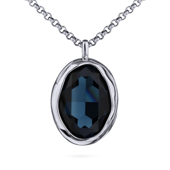 Кулон Грация (кристаллы SW 30х22 темно-синие; покрытие родий) 90-95см, Есть комплект