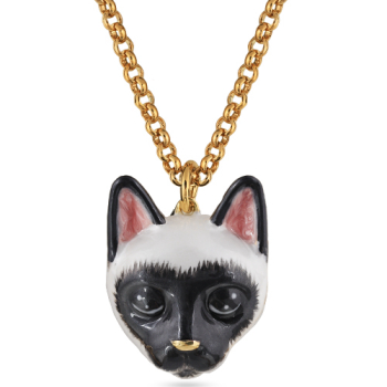 Изготовлено из ювелирного сплава на основе латуни с гальваническим покрытием золотом. Изделие украшает эмаль бело-черного цвета, нанесенная вручную. Размер украшения 4.5см. Длина цепи 90см. Замок-карабин с удлинителем 5см.