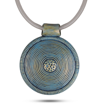 Кулон (кожа натуральная белая; покрытие: бронза синяя)