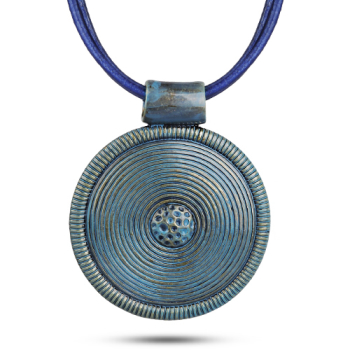 Кулон (кожа синяя; покрытие: бронза синяя)
