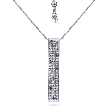 Изготовлено из ювелирного сплава на основе латуни с гальваническим покрытием родием. Изделие украшают кристаллы SW белого цвета. На цепочке установлен регулятор длины. Максимальная длина цепочки 80см. Размер кулона 6, 5х1см.