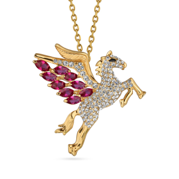 Кулон Лошадь 42-47см (кристаллы SW фуксия, белые; покрытие золото), Есть комплект