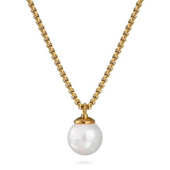 Кулон (Майорка 14мм белая; покрытие золото) 50-57см, Есть комплект
