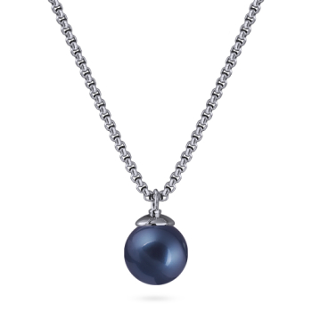 Изготовлено из ювелирного сплава на основе латуни с гальваническим покрытием родием. Изделие украшает жемчуг Майорка диаметром 14мм черничного цвета. Длина 50см. Замок-карабин с удлинителем 7см.