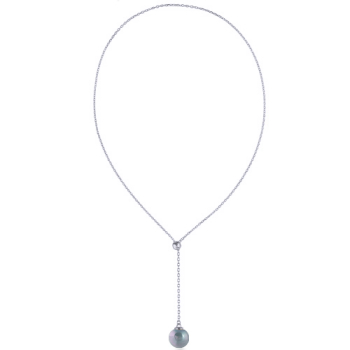Изготовлено из ювелирного сплава на основе латуни с гальваническим покрытием родием. Изделие украшает жемчуг Майорка диаметром 14мм голубого цвета. Длина колье регулируется. Максимальная длина 72см.