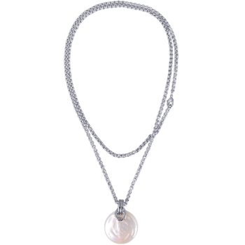 Кулон (Майорка 30мм белая; покрытие родий) 90см, Есть комплект