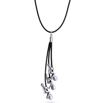 Изготовлено из ювелирного сплава на основе латуни с гальваническим покрытием родием. Длина черного текстильного шнурка 52см. Замок-карабин с удлинителем 5см. Длина кулона 6см.