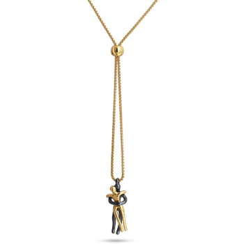 Изготовлено из ювелирного сплава на основе латуни с гальваническим покрытием золотом и черным родием. Длина цепи регулируется. Максимальная длина 64см. Длина кулона 2.5см.
