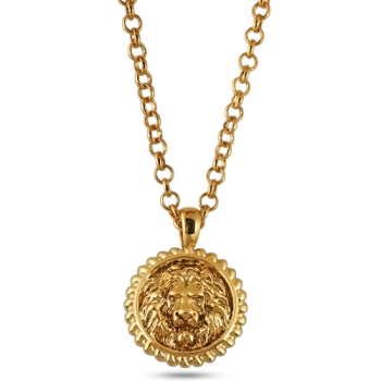 Кулон Огненный лев (диаметр 3см; покрытие золото с патиной) 55-60см, Есть комплект