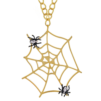 Изготовлено из ювелирного сплава на основе латуни с гальваническим покрытием золотом. Изделие расписано ювелирной краской черного цвета, покрыто эмалью и украшено кристаллами SW белого цвета. Размер украшения 10х7.5см. Длина цепочки 75см.