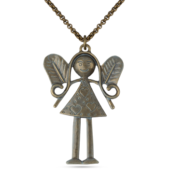 Кулон подружка 100см (эмаль голубая; покрытие бронза)