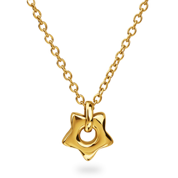 Изготовлено из ювелирного сплава на основе латуни с гальваническим покрытием золотом. Длина цепочки 40-45см. Размер кулона 1, 3х1, 3см.