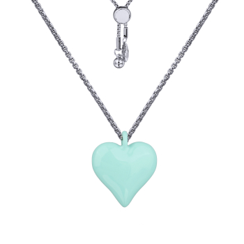 Изготовлено из ювелирного сплава на основе латуни с гальваническим покрытием родием. Изделие украшает эмаль цвета морская свежесть. Размер кулона 1.6х1.6см. Длина цепочки 82см.