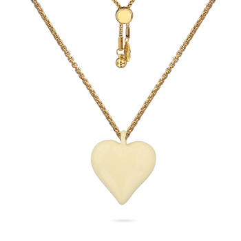 Изготовлено из ювелирного сплава на основе латуни с гальваническим покрытием золотом. Изделие украшает эмаль цвета сливочного масла. Размер кулона 1.6х1.6см. На цепочке установлен бегунок регулировки длины. Максимальная длина цепочки 82см.