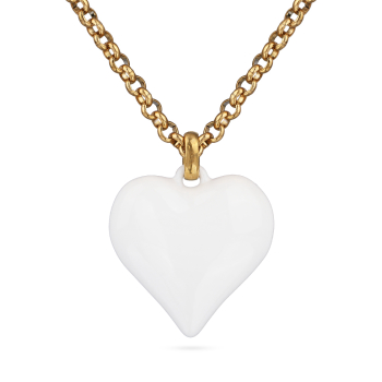 Кулон Сердцебиение (2, 5см, эмаль белая; покрытие золото) 95см, Есть комплект