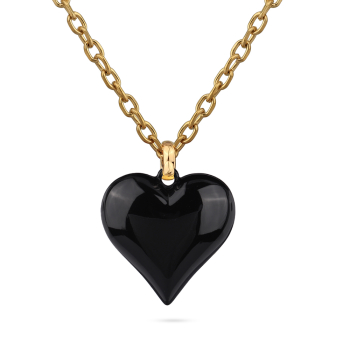 Изготовлено из ювелирного сплава на основе латуни с гальваническим покрытием золотом. Изделие украшает черная эмаль. Длина цепочки 90см. Удлинитель 5см. Размер кулона 2.5х2.5см.