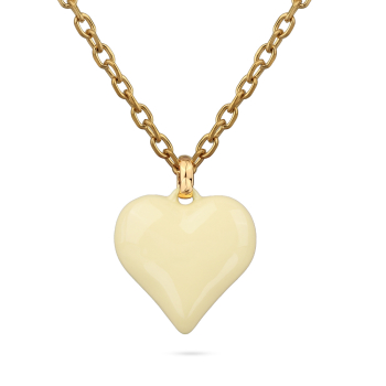 Изготовлено из ювелирного сплава на основе латуни с гальваническим покрытием золотом. Изделие украшает эмаль цвета сливочного масла. Длина цепочки 90см. Удлинитель 5см. Размер кулона 2.5х2.5см.