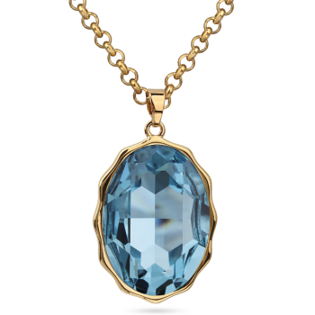 Изготовлено из ювелирного сплава на основе латуни с гальваническим покрытием золотом. Изделие украшают кристаллы SW цвета аквамарин. Длина цепочки 90см. Замок-карабин с удлинителем 5см. Размер кулона 30х20мм.