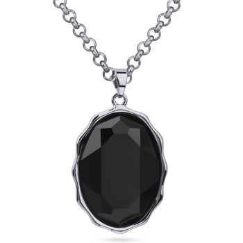 Изготовлено из ювелирного сплава на основе латуни с гальваническим покрытием родием. Изделие украшают кристаллы SW черного цвета. Длина цепочки 90см. Замок-карабин с удлинителем 5см. Размер кулона 30х20мм.