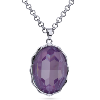 Изготовлено из ювелирного сплава на основе латуни с гальваническим покрытием родием. Изделие украшают кристаллы SW пурпурного цвета. Длина цепочки 90см. Замок-карабин с удлинителем 5см. Размер кулона 30х20мм.