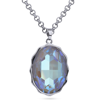 Изготовлено из ювелирного сплава на основе латуни с гальваническим покрытием родием. Изделие украшают кристаллы SW серо-синего цвета.Длина цепочки 90см. Замок-карабин с удлинителем 5см. Размер кулона 30х20мм.
