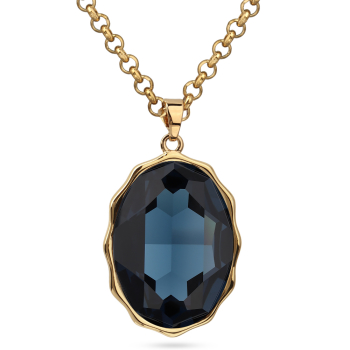 Изготовлено из ювелирного сплава на основе латуни с гальваническим покрытием золотом. Изделие украшают кристаллы SW темно-синего цвета. Длина цепочки 90см. Замок-карабин с удлинителем 5см. Размер кулона 30х20мм.
