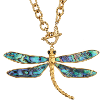 Изготовлено из ювелирного сплава на основе латуни с гальваническим покрытием золотом. Изделие украшает гелиотис. Длина цепочки 80см. Замок-тогл. Размер кулона 10х7см.