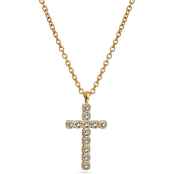 Изготовлено из ювелирного сплава на основе латуни с гальваническим покрытием золотом. Изделие украшают кристаллы SW белого цвета диаметром 4мм. Длина цепочки 50 — 55см. Размер кулона 5х2, 5см.
