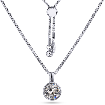 Изготовлено из ювелирного сплава на основе латуни с гальваническим покрытием родием. Изделие украшают кристаллы SW белого цвета диаметром 8мм. Размер кулона 1.5х1см. Длина 70см. На цепочке установлен бегунок регулировки длины.