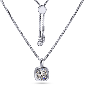 Изготовлено из ювелирного сплава на основе латуни с гальваническим покрытием родием. Изделие украшают кристаллы SW белого цвета диаметром 8мм. Размер кулона 1.5х1см. На цепочке установлен бегуное регулировки длины. Максимальная длина 70см.