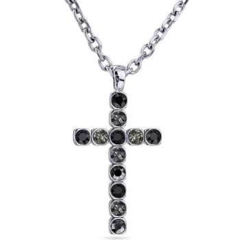 Изготовлено из ювелирного сплава на основе латуни с гальваническим покрытием родием. Изделие украшают кристаллы SW черного микс цвета диаметром 6мм. Длина цепочки 50-55см. Размер кулона 6.8х4см.